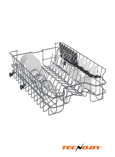 загрузка на 9 комплектов посуды, электронное управление, 7 программ, 44.8×52×82 см, серебристый цвет, сушка: конденсационная, половинная загрузка, индикация на полу: нет
