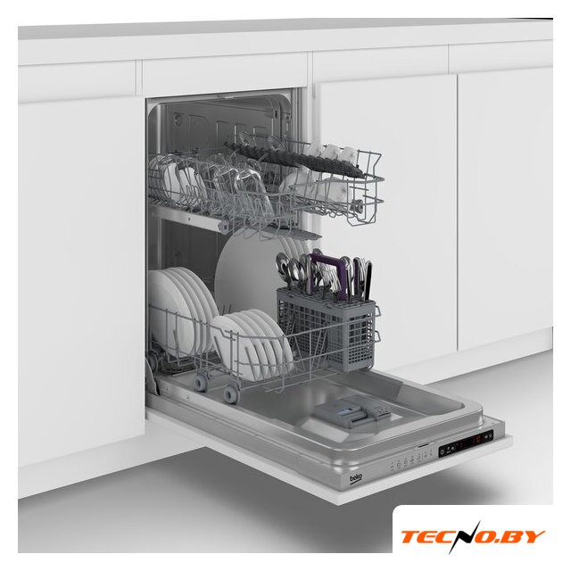 BEKO BDIS15060 оснащена простой и интуитивно понятной электронной панелью управления. Цифровая индикация позволяет легко следить за программами и контролировать текущее состояние мойки. Индикация на полу в виде луча подскажет, закончился ли процесс мойки, а звуковой сигнал проинформирует о завершении цикла.