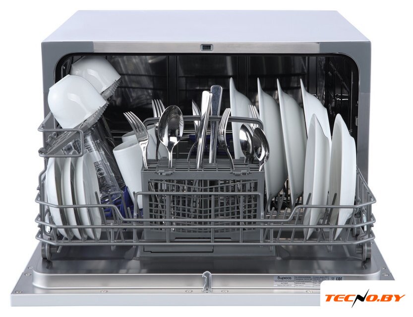 загрузка на 6 комплектов посуды, электронное управление, 6 программ, серебристый цвет, сушка: стандартная (конденсация), индикация на полу: нет