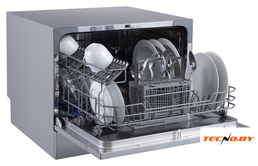 загрузка на 6 комплектов посуды, электронное управление, 6 программ, белый цвет, сушка: конденсационная, индикация на полу: нет