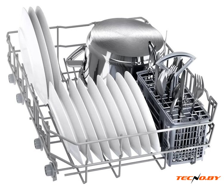 Посудомоечная машина оснащена защитой от протечек, обеспечивающей надежную работу и предотвращающей неприятные ситуации. Регулируемая по высоте верхняя корзина позволяет максимально эффективно использовать внутреннее пространство, аккомпанируя вашему желанию оптимизировать загрузку. В комплекте также предусмотрена корзина для столовых приборов, упрощающая их хранение и мытье.