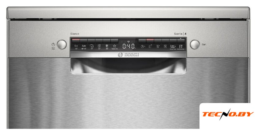 Интуитивно понятное электронное управление с цифровой индикацией позволяет легко настроить все необходимые параметры. Среди важных функций — таймер отложенного старта, блокировка от детей, индикаторы отсутствия соли и ополаскивателя. Звуковой сигнал оповестит вас о завершении цикла.