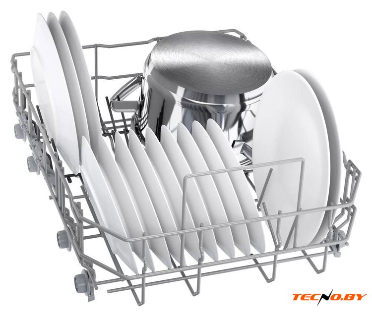 Регулируемая по высоте верхняя корзина с держателями для бокалов и третий короб для приборов позволяют гибко использовать внутреннее пространство машины, чтобы обеспечить идеальное расположение и чистку всех видов и размеров посуды. 🔄 Защита от протечек делает использование Bosch Serie 4 SPV4EMX10E максимально безопасным в любом доме.