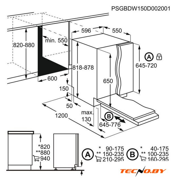 загрузка на 15 комплектов посуды, электронное управление, 8 программ, 59.6x55x82 см, черный цвет, сушка: с открыванием дверцы, индикация на полу: луч
