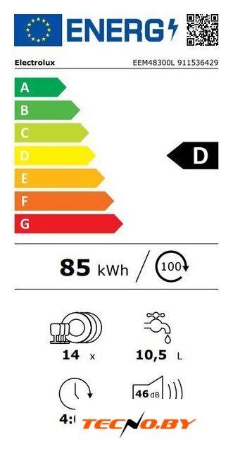 Встраиваемая посудомоечная машина Electrolux EEM48300L отлично впишется в вашу кухню и сделает процесс мытья посуды максимально комфортным. Эта модель, произведенная в Польше, имеет класс энергоэффективности D, что делает её экономичной в ежедневном использовании. Вместительность на 14 комплектов посуды позволит удовлетворить потребности даже большой семьи. Обладая уровнем шума всего 46 дБ, машина будет работать тихо и не нарушит вашего покоя.