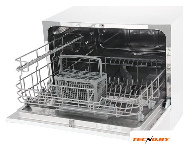 загрузка на 3 комплекта посуды, сенсорное управление, 5 программ, белый цвет, сушка: конденсационная, индикация на полу: нет
