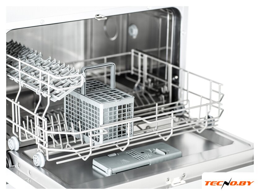 загрузка на 6 комплектов посуды, электронное управление, 5 программ, белый цвет, сушка: конденсационная, индикация на полу: нет