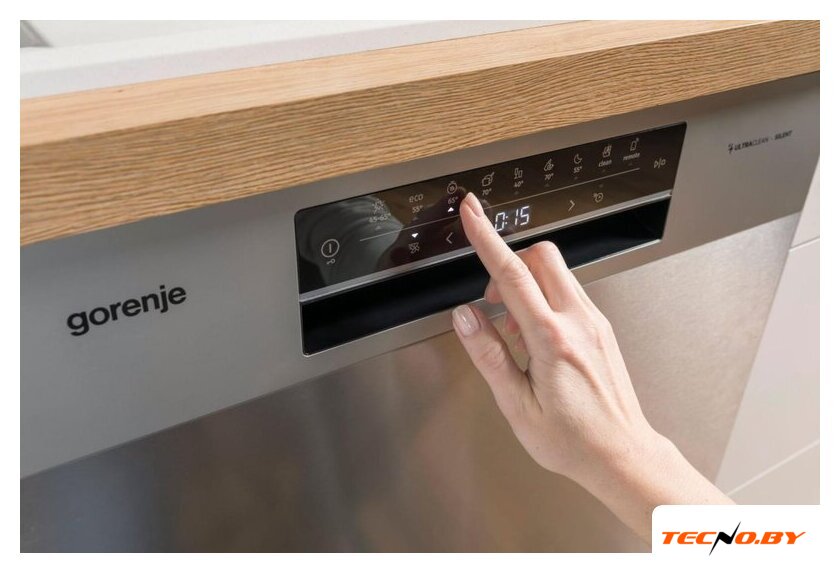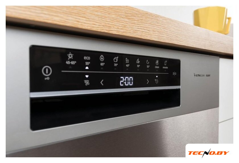Машина оснащена сенсорным управлением и цифровой индикацией, что делает ее использование интуитивно понятным. Для удобства предусмотрены индикаторы отсутствия соли и ополаскивателя. Также есть звуковой сигнал для оповещения об окончании цикла и таймер отложенного старта до 24 часов, чтобы запланировать мойку посуды в удобное для вас время. Забота о безопасности семьи обеспечивается функцией блокировки от детей.