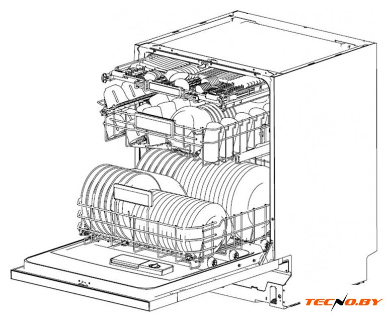 С размерами 60х55.8х81.5 см, GrandGermes DWA-60 легко устанавливается в кухонный гарнитур. Третий короб для приборов и резиновые держатели для бокалов в верхней корзине позволяют максимально эффективно использовать внутреннее пространство. Такому устройству найдется место в любой кухне!