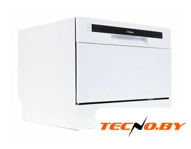 загрузка на 6 комплектов посуды, сенсорное управление, 4 программы, 56x50x46.5 см, белый цвет, сушка: стандартная (конденсация), индикация на полу: нет