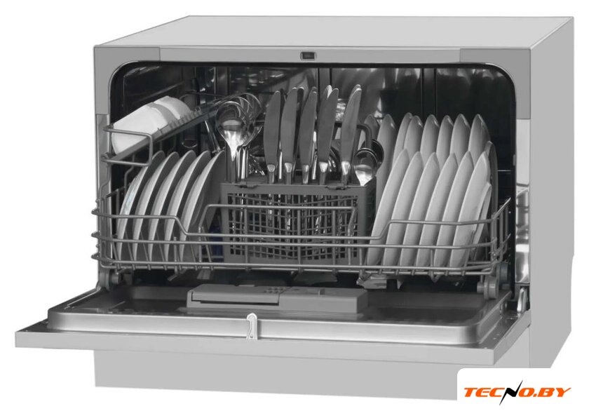 загрузка на 6 комплектов посуды, электронное управление, 6 программ, белый цвет, сушка: конденсационная, индикация на полу: нет