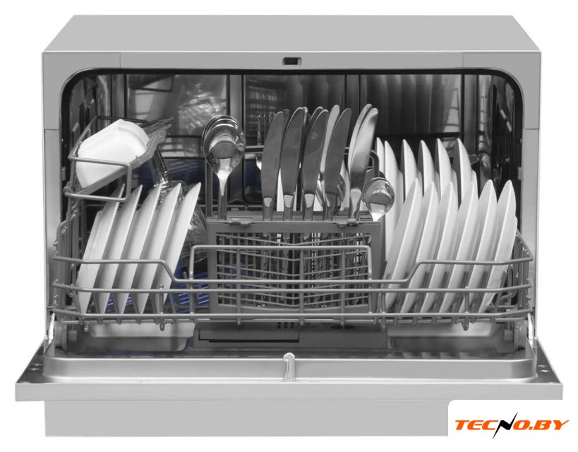 загрузка на 6 комплектов посуды, сенсорное управление, 4 программы, 56x50x46.5 см, белый цвет, сушка: стандартная (конденсация), индикация на полу: нет