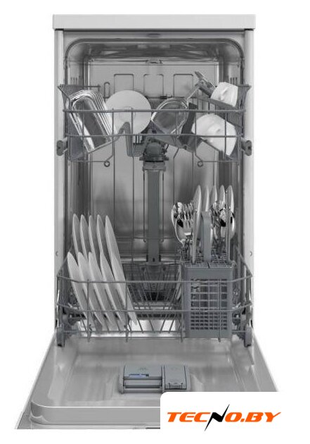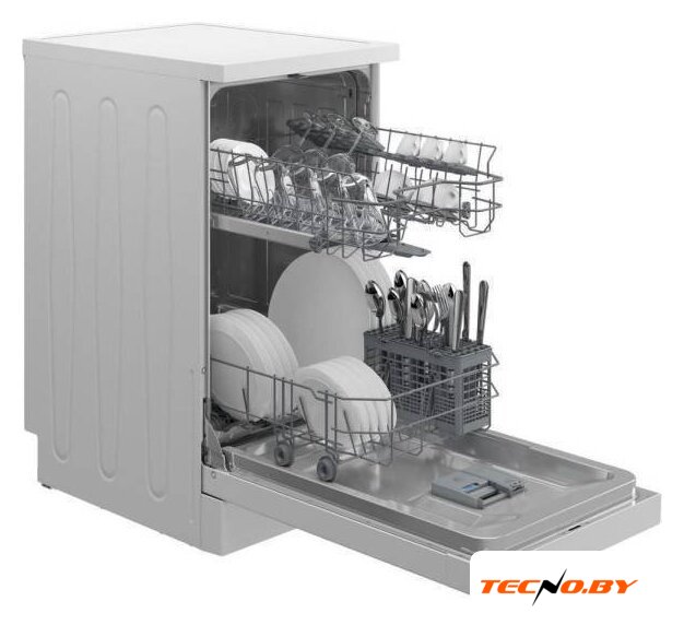 В комплекте с машиной поставляется удобная корзина для столовых приборов, что упрощает процесс мойки. Габариты машины составляют 44.8 см в ширину, 60 см в глубину и 85 см в высоту, при весе 35.6 кг, что позволяет ей разместиться даже в небольших кухнях.