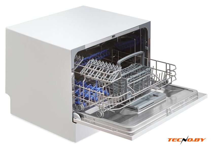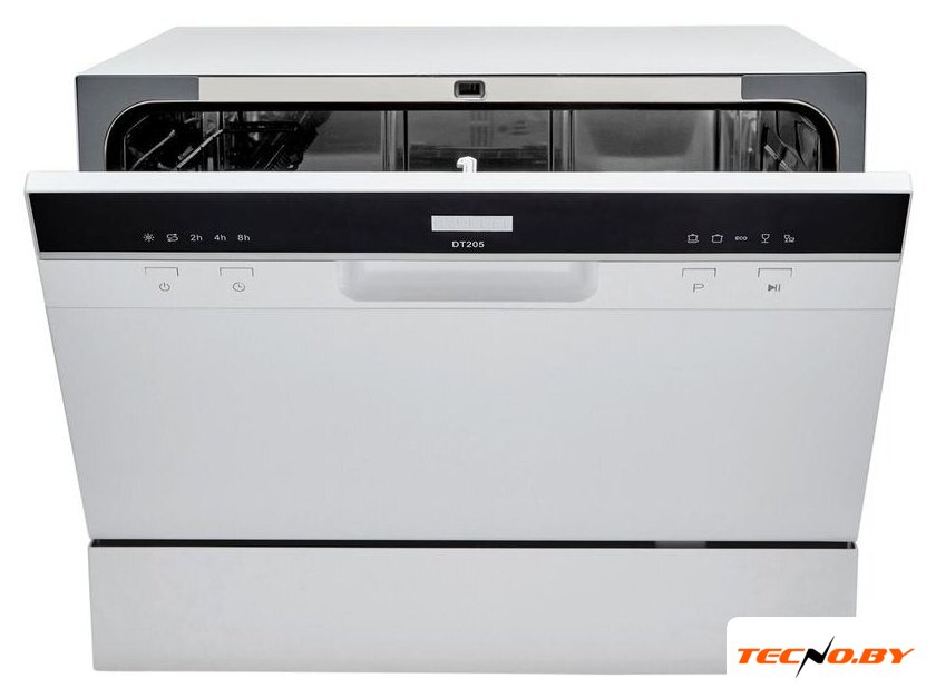 загрузка на 3 комплекта посуды, сенсорное управление, 5 программ, белый цвет, сушка: с открыванием дверцы, индикация на полу: нет