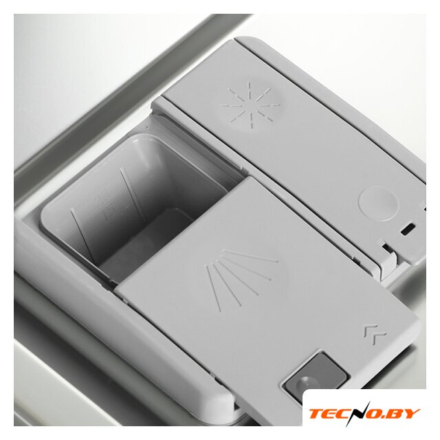Электронное управление снабжено светодиодной индикацией, а звуковой сигнал уведомит вас о завершении цикла. Таймер отложенного старта до 19 часов обеспечивает гибкость в планировании времени работы устройства. Наличие индикаторов отсутствия соли и ополаскивателя позволяет своевременно контролировать расход дополнительных средств.