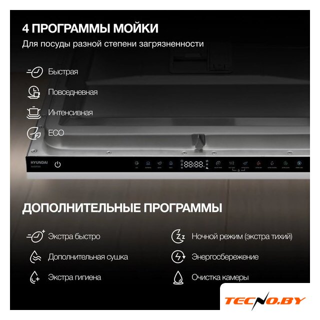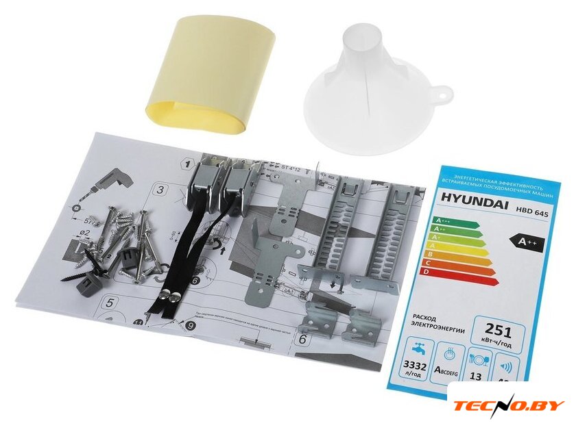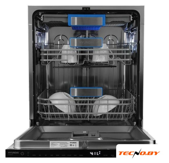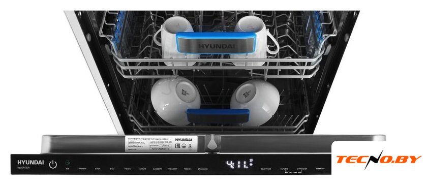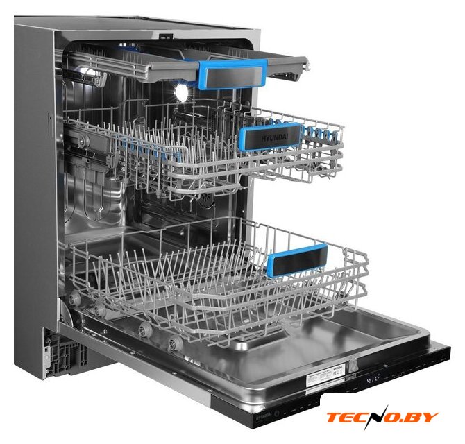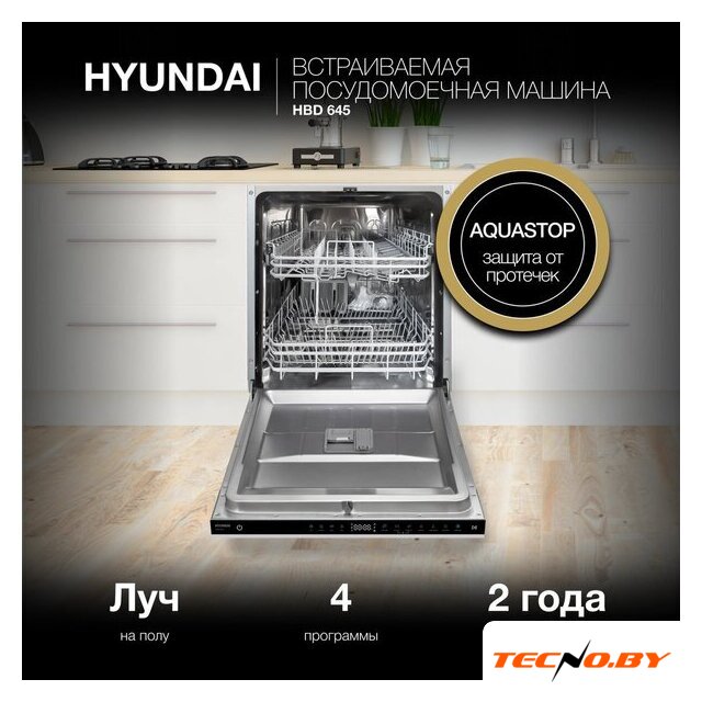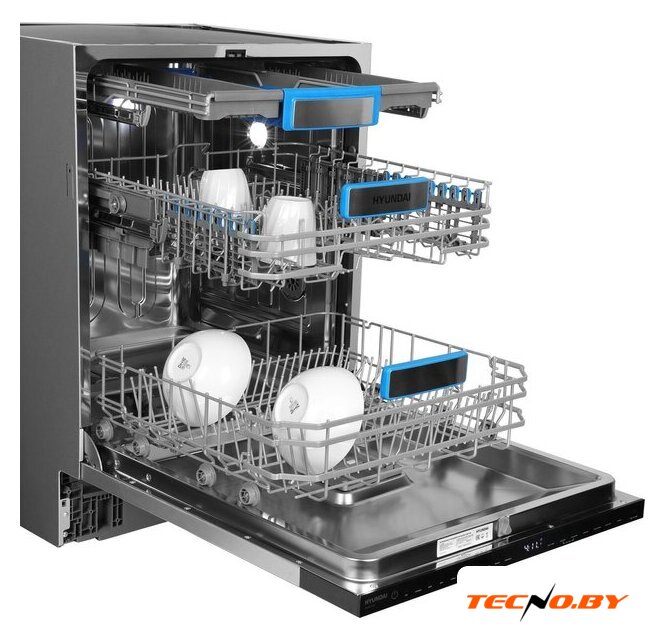 Hyundai HBD 645 оснащена системой защиты от протечек, что позволяет избежать неожиданных неприятностей. Верхняя корзина регулируется по высоте, обеспечивая гибкость в размещении посуды. Внутреннее освещение облегчает загрузку и выгрузку, а третий короб для приборов упрощает процесс сортировки и размещения столовых принадлежностей.