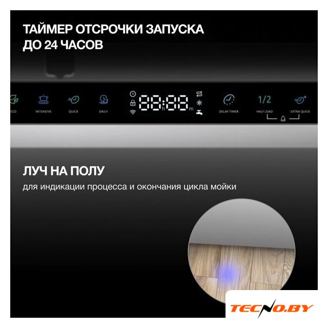загрузка на 14 комплектов посуды, электронное управление, 5 программ, сушка: стандартная (конденсация), индикация на полу: луч