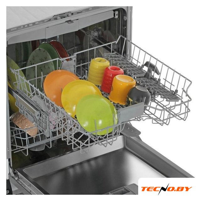 загрузка на 13 комплектов посуды, электронное управление, 5 программ, 59.8x55x82 см, серебристый цвет, сушка: стандартная (конденсация), индикация на полу: луч