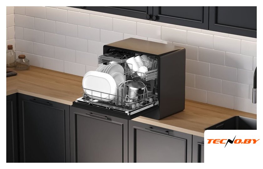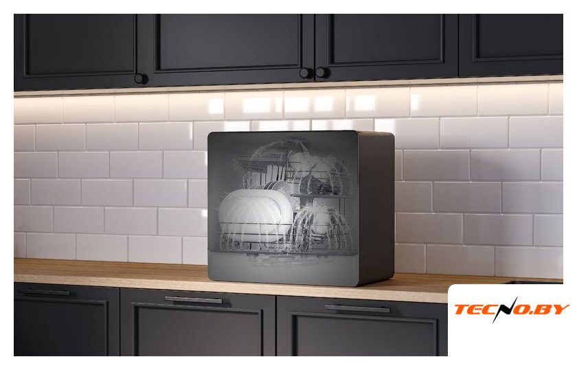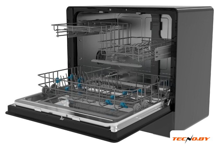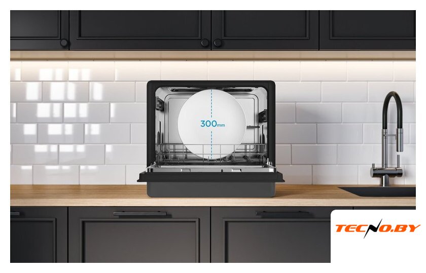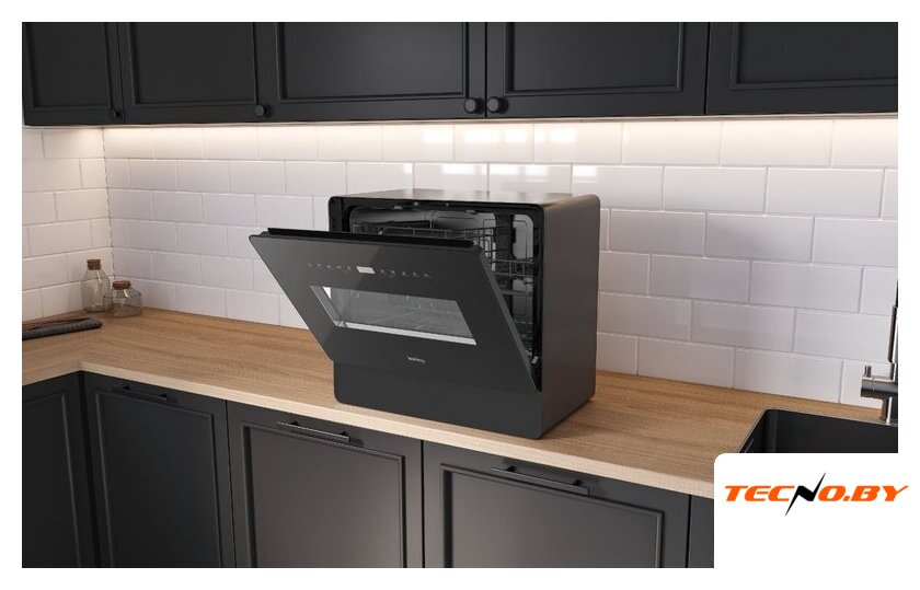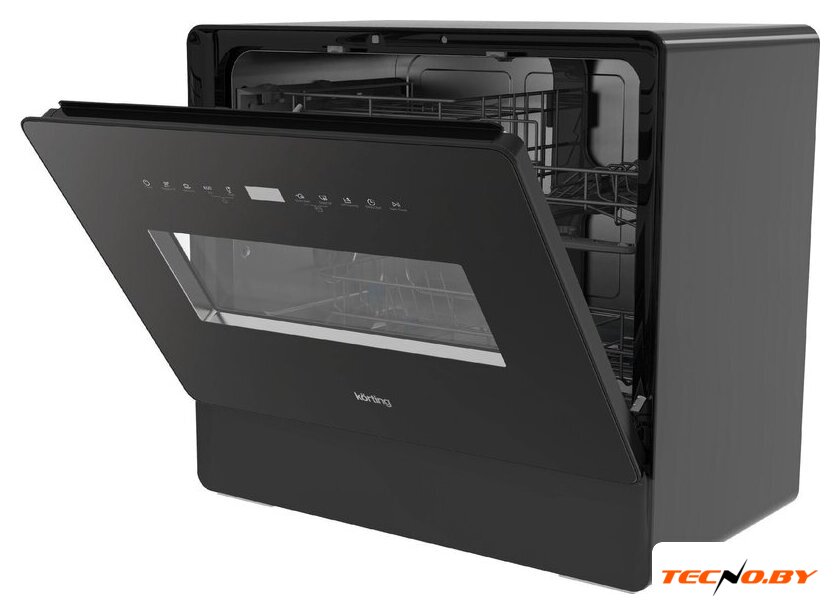 загрузка на 10 комплектов посуды, электронное управление, 5 программ, черный цвет, сушка: конденсационная, половинная загрузка, индикация на полу: нет