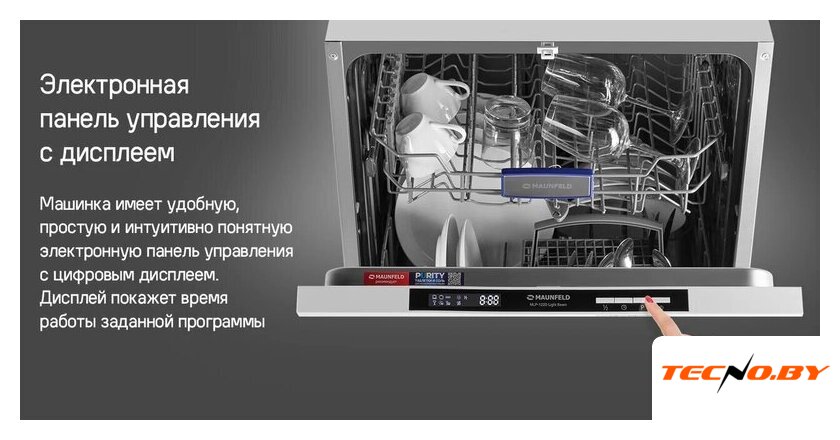 загрузка на 10 комплектов посуды, электронное управление, 6 программ, 44.8x55x81.5 см, нержавеющая сталь цвет, сушка: с теплообменником, индикация на полу: луч