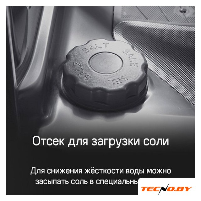 загрузка на 10 комплектов посуды, сенсорное управление, 6 программ, 44.6x55x82 см, черный цвет, сушка: с открыванием дверцы, индикация на полу: луч