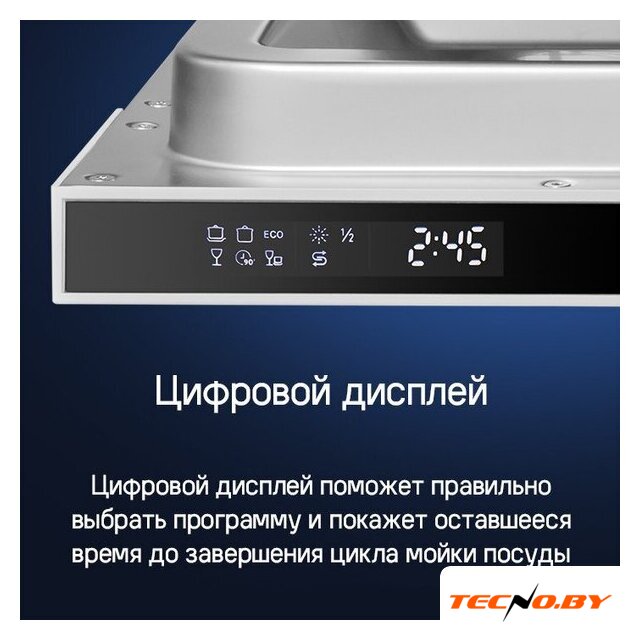 Электронное управление упрощает выбор программы, а цифровая индикация и звуковой сигнал уведомят вас о завершении цикла. Наличие индикаторов отсутствия соли и ополаскивателя предотвратит необходимость вручную проверять их уровень, обеспечивая максимальный комфорт и удобство.