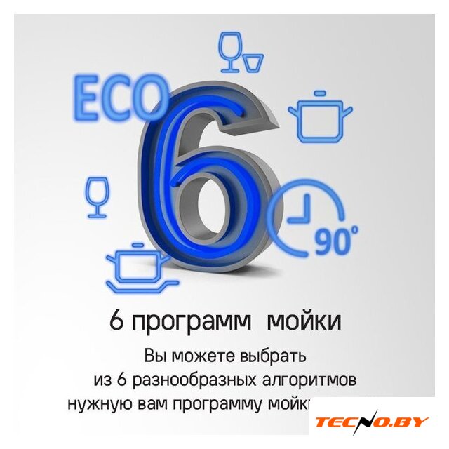 Выберите из шести доступных программ, включая ежедневную, экономичную и интенсивную мойку. Для деликатных изделий доступна специальная программа для стекла при 40°C. Короткая программа занимает всего 30 минут, что идеально для быстрой и эффективной очистки. Встроенный таймер отложенного старта добавляет удобство, позволяя запустить машину в любое удобное вам время.