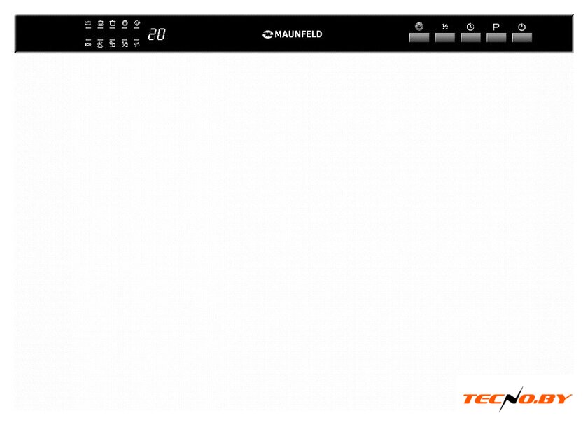 MAUNFELD MLP 08B включает в себя продуманные функции, как например индикацию на полу в виде луча, позволяющую легко следить за процессом работы. Электронное управление и цифровая индикация обеспечивают простоту в использовании, а звуковой сигнал подскажет вам о завершении цикла. Кроме того, в наличии датчик чистоты воды и индикаторы отсутствия соли и ополаскивателя — ваш личный контроль за состоянием процесса.