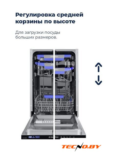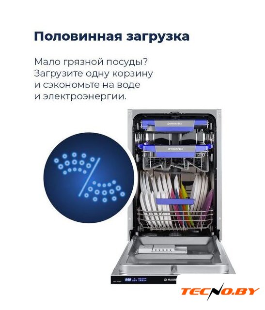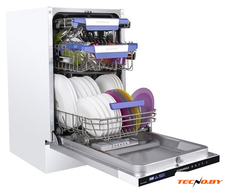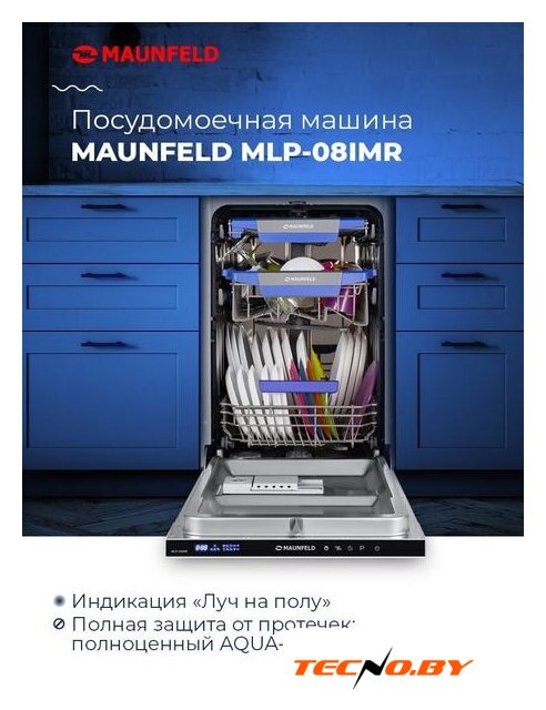 Встраиваемая посудомоечная машина MAUNFELD MLP-08IMR, вышедшая на рынок в 2019 году, выполнена в грациозном дизайне из нержавеющей стали, который легко интегрируется в любую кухню. Эта посудомоечная машина рассчитана на максимальную загрузку до 10 комплектов посуды, что делает её идеальным выбором для средних и больших семей. С её уровнем шума всего 47 дБ, она работает практически бесшумно, не отвлекая от повседневных дел.
