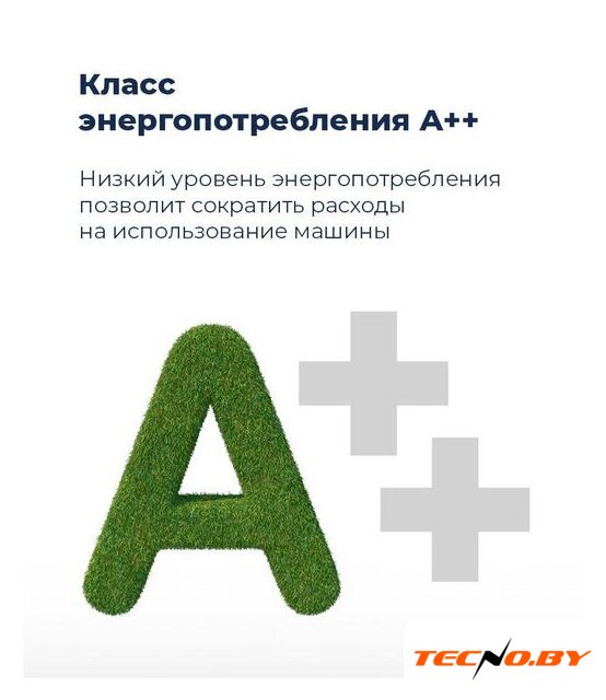 Эта модель оснащена системой сушки конденсационного типа, обеспечивающей высокий класс сушки A. Благодаря классу энергопотребления A++, машина является экономичной как с точки зрения потребления энергии (всего 0.722 кВт·ч за цикл), так и расхода воды (всего 9 литров за цикл).