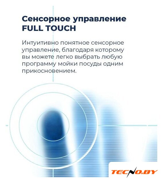Посудомоечная машина управляется с помощью удобного сенсорного интерфейса. Она имеет цифровую индикацию, звуковой сигнал, а также функции таймера отложенного старта до 24 часов, что позволяет программировать её работу в удобное для вас время. Индикаторы отсутствия соли и ополаскивателя обеспечивают полный контроль за поддержанием машины в рабочем состоянии.