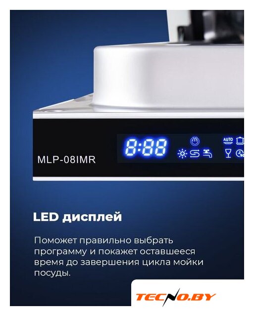 MAUNFELD MLP-08IMR предлагает 8 различных программ, включая автоматическую программу с температурным диапазоном от 45 до 65 °C, ежедневную и экономичную программы при 65 °C, а также деликатную мойку для стекла и интенсивную мойку при 70 °C. Для быстрой уборки предусмотрена короткая программа на 30 минут. 💧