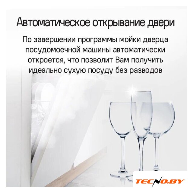 загрузка на 9 комплектов посуды, сенсорное управление, 8 программ, 44.6x55x82 см, черный цвет, сушка: с открыванием дверцы, индикация на полу: луч