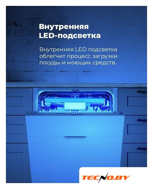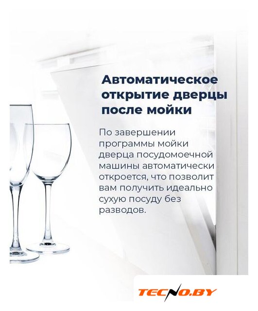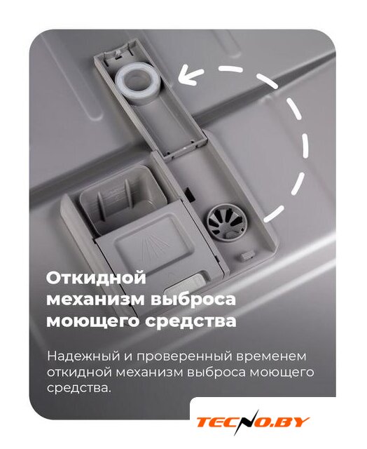 загрузка на 15 комплектов посуды, электронное управление, 6 программ, 44.8x55x82 см, серебристый цвет, сушка: стандартная (конденсация)/с открыванием дверцы, индикация на полу: луч
