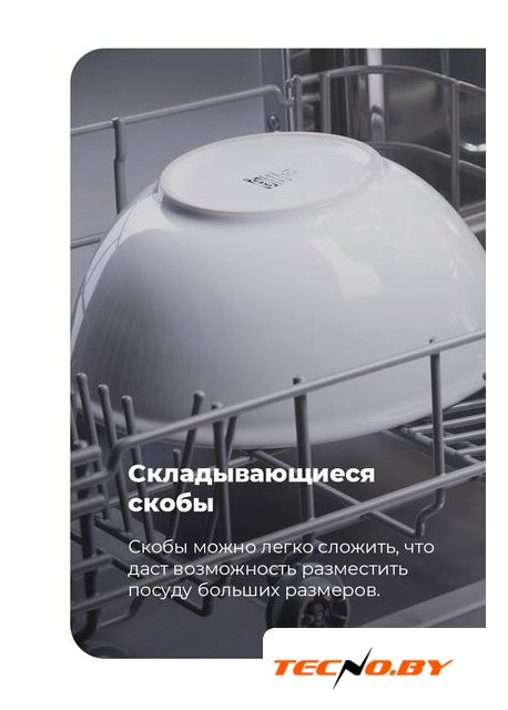 Эта посудомоечная машина обладает стройными габаритами (ширина 59.8 см, глубина 55 см и высота 81.5 см), что позволяет встроить её в кухонную мебель практически любой конфигурации. Минимальные требования для ниши составляют 82 см в высоту, 60 см в ширину и 58 см в глубину. Элегантный чёрный цвет корпуса станет стильным дополнением интерьера вашей кухни.