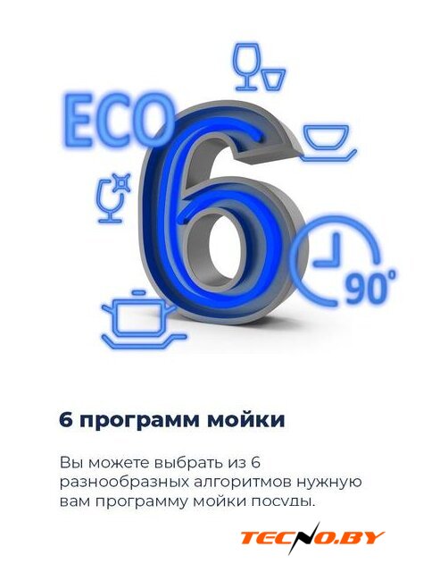 Семь разнообразных программ мойки, включая автоматическую программу с диапазоном температур от 45 до 65 °C, предоставляют вам широкий выбор опций для любой ситуации. Быстрая мойка при 45 °C поможет очистить вашу посуду всего за короткое время, а интенсивная мойка при 60 °C будет отличным выбором для удаления стойких загрязнений. Экономичная программа позволит снизить потребление воды и энергии без ущерба для качества мытья.
