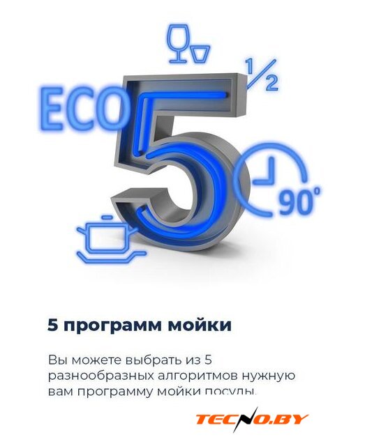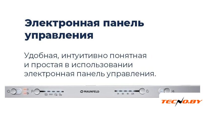 Удобное электронное управление сопровождается светодиодной индикацией, дающей возможность контролировать процесс мойки. Встроенный таймер отложенного старта до 12 часов позволяет запускать машину в удобное для вас время. Индикация сигнализирует об отсутствии соли и ополаскивателя, помогая своевременно восполнить запасы этих средств.