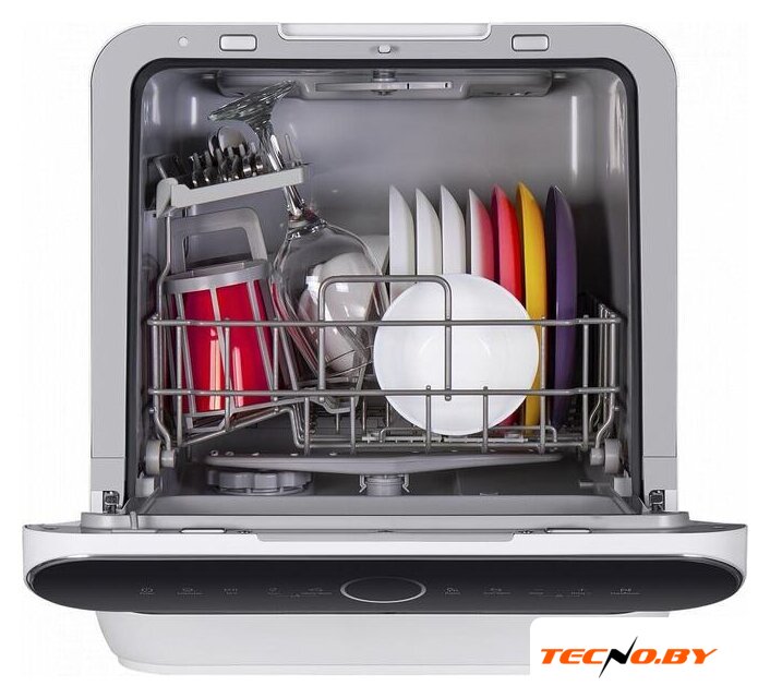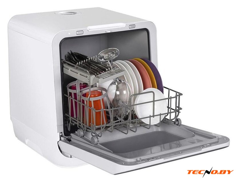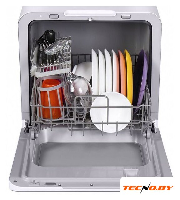 загрузка на 6 комплектов посуды, электронное управление, 6 программ, белый цвет, сушка: стандартная (конденсация), индикация на полу: нет