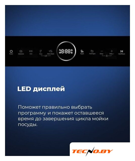Удобное сенсорное управление делает использование машины интуитивно понятным. Вы можете выбрать одну из 5 программ мытья, включая экономичную и деликатную мойку при температуре 50-55°C. Для максимально быстрого результата предусмотрена быстрая мойка, которая завершает цикл за 29 минут. Таймер отложенного старта дает возможность запланировать начало работы на удобное для вас время.