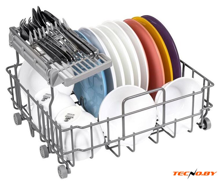 Для дополнительной безопасности предусмотрена блокировка от детей. Звуковой сигнал уведомит о завершении работы, а сушка при открытой дверце обеспечит дополнительную свежесть посуды. Удобные размеры — ширина 42 см, глубина 43.5 см и высота 46.5 см — позволяют разместить устройство в самых компактных кухонных пространствах.