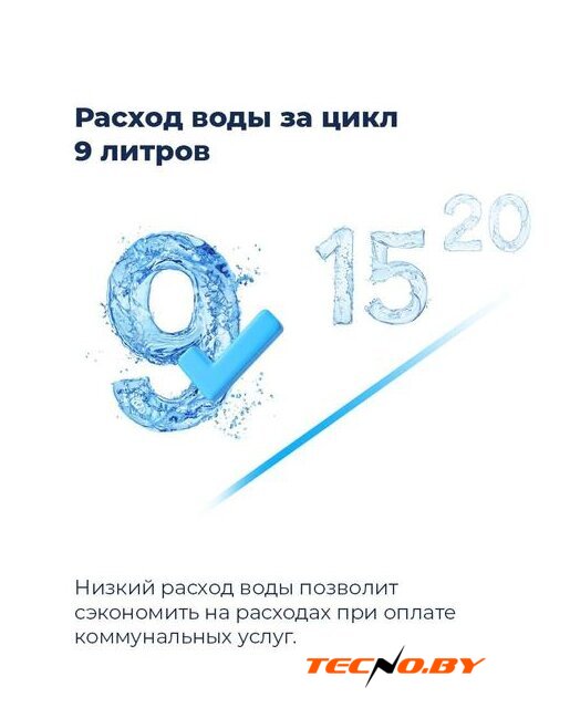 Энергоэффективность — важный аспект в современном мире. Этот прибор соответствует классу энергопотребления A+ и расходует всего 1.02 кВт·ч электроэнергии за цикл, потребляя 9 литров воды. Такой расход сохранит как ваши средства, так и ресурсы природы 🌿.