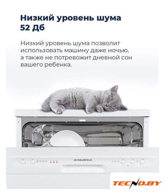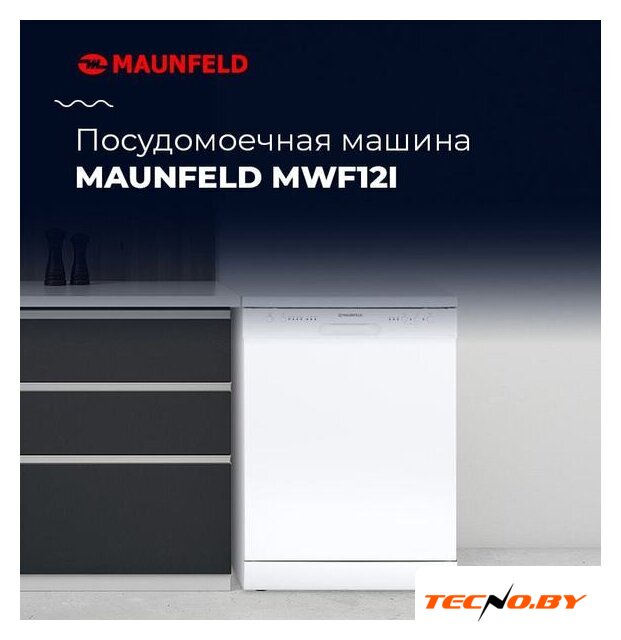 Отдельностоящая посудомоечная машина MAUNFELD MWF12I вышла на рынок в 2019 году и сразу привлекла внимание потребителей своей надежностью и эффективностью. Этот белоснежный прибор станет отличным помощником на вашей кухне, легко вписываясь в любое пространство благодаря своим стандартным габаритам: ширина — 60 см, глубина — 59.8 см, высота — 84.5 см.