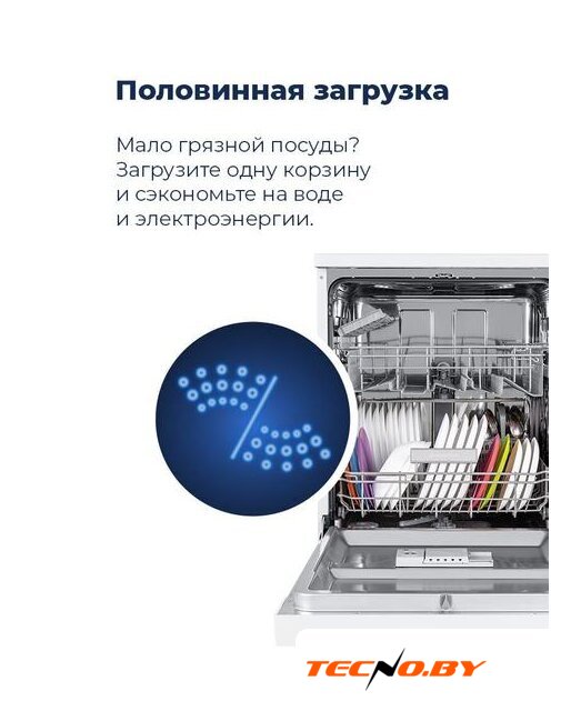 С мощной максимальной загрузкой в 12 комплектов посуды, машина предлагает четыре режима работы, среди которых ежедневная, экономичная, быстрая и интенсивная мойки. Хотите сократить расход воды на полные нагрузки? Используйте функцию половинной загрузки. С конденсационной сушкой класса A ваши тарелки и столовые приборы всегда будут идеально высушены.