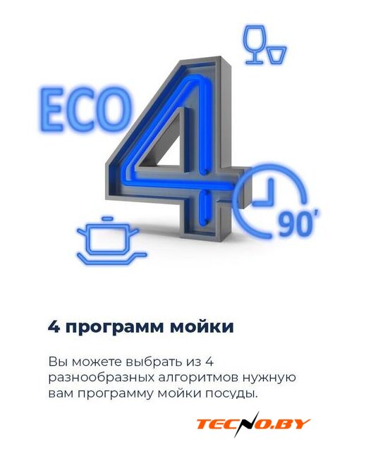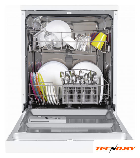 загрузка на 9 комплектов посуды, электронное управление, 8 программ, белый цвет, сушка: с открыванием дверцы, индикация на полу: нет