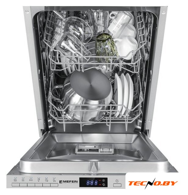 Meferi MDW4562 LIGHT предлагает 6 программ мойки. Вы можете выбрать экономичную или интенсивную программу, короткую или деликатную мойку (для стекла). Также доступна ежедневная программа с температурой воды 65 °C. Дополнительные опции включают функцию дополнительной сушки и возможность половинной загрузки, что способствует экономии ресурсов.