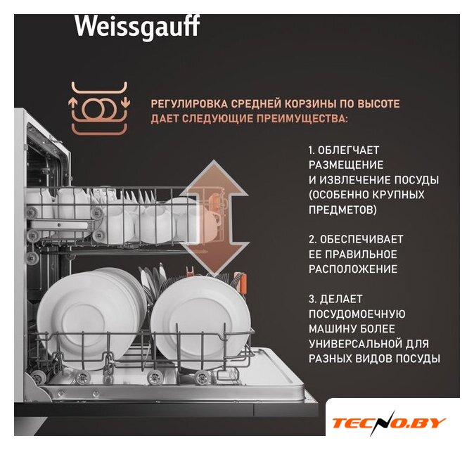 | Особенности верхней корзины | регулировка положения по высоте, складывающиеся держатели |