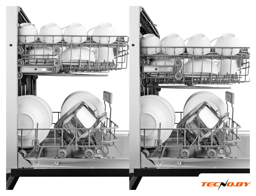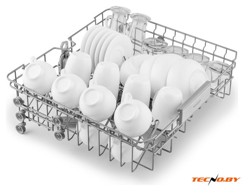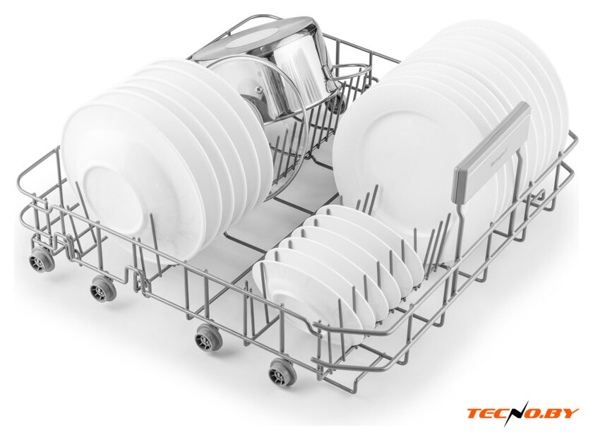 Забудьте о протечках, ведь Weissgauff BDW 6035 оснащена надежной защитой от них. Внутреннее пространство оптимизировано для размещения различных типов посуды: верхняя корзина регулируется по высоте и оснащена резиновыми держателями для бокалов, что позволяет безопасно мыть даже самые хрупкие изделия.