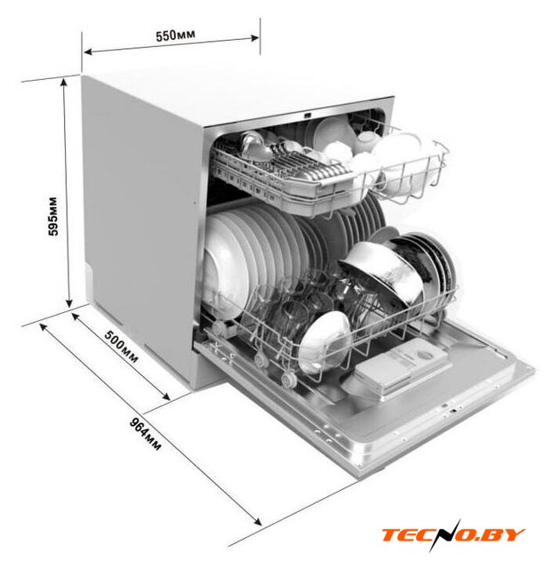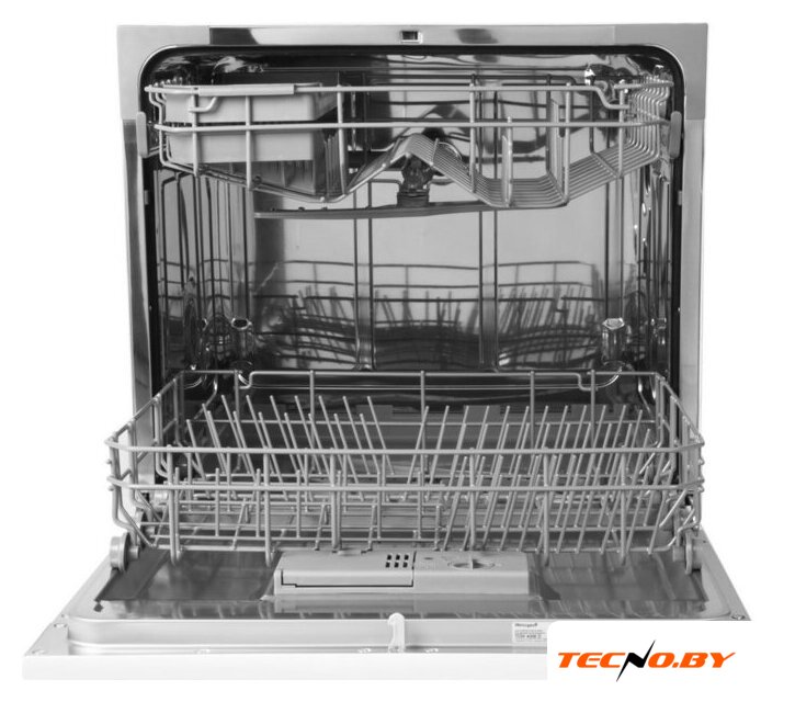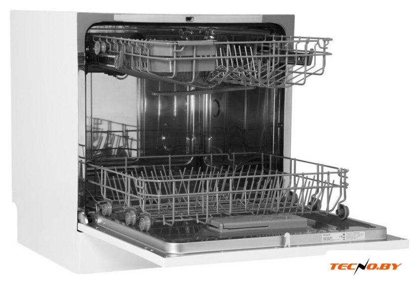 загрузка на 6 комплектов посуды, электронное управление, 6 программ, белый/черный цвет, сушка: конденсационная, индикация на полу: нет