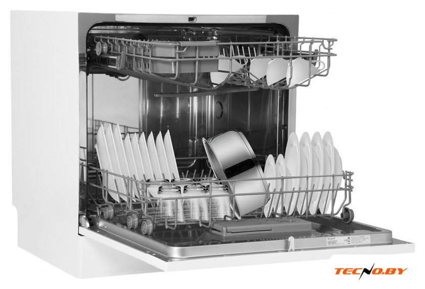 загрузка на 6 комплектов посуды, электронное управление, 6 программ, белый цвет, сушка: стандартная (конденсация), индикация на полу: нет