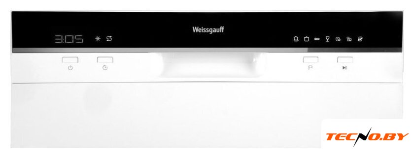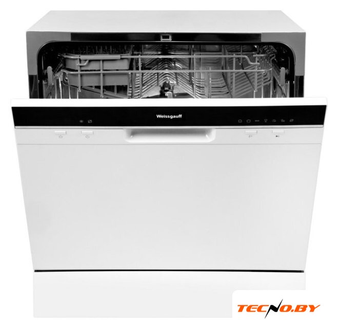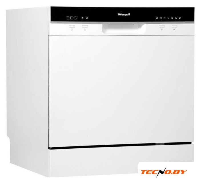 загрузка на 3 комплекта посуды, сенсорное управление, 7 программ, белый/черный цвет, сушка: стандартная (конденсация)/с открыванием дверцы, индикация на полу: нет